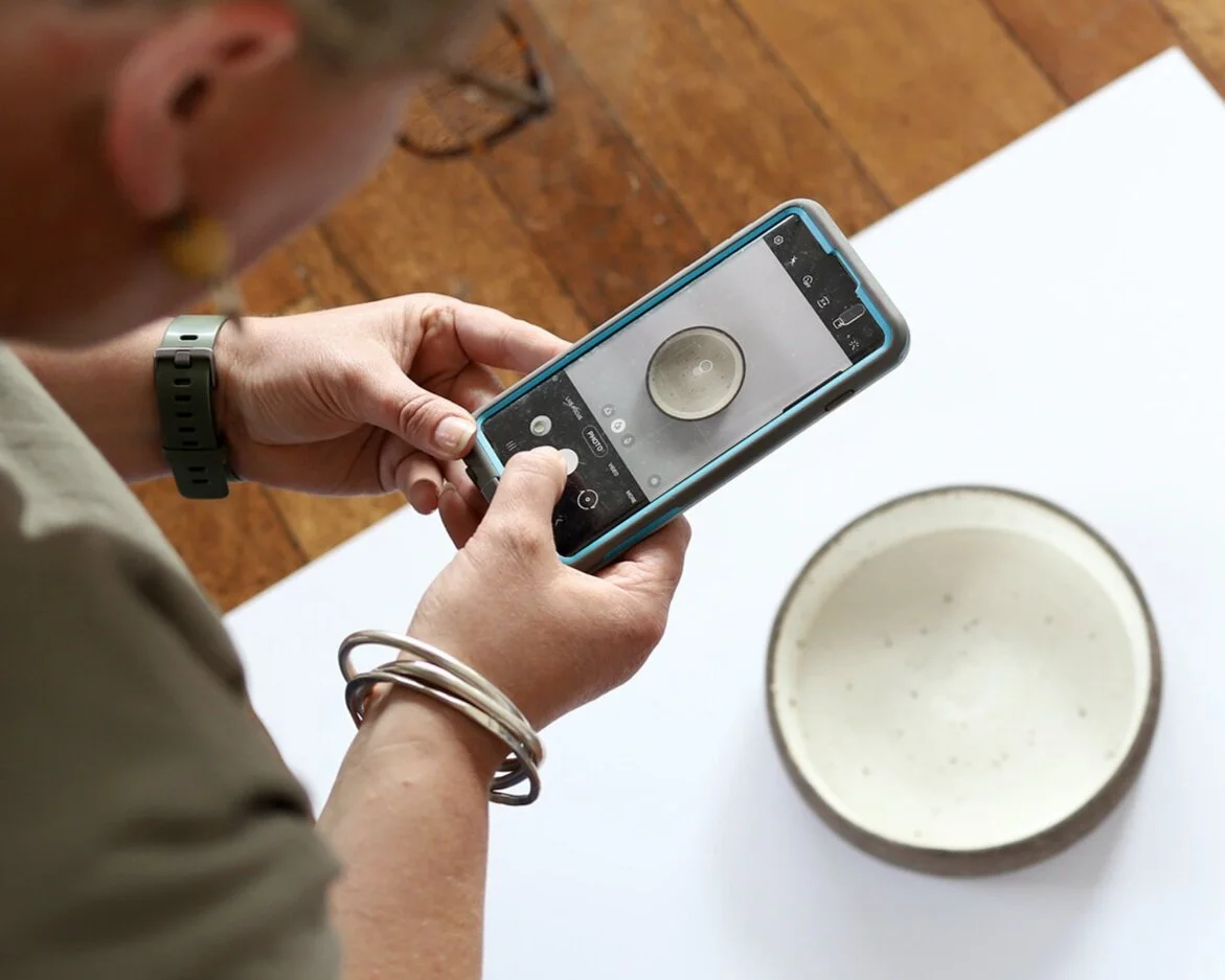 Cassie Scammel learning to photograph her ceramics at the workshop