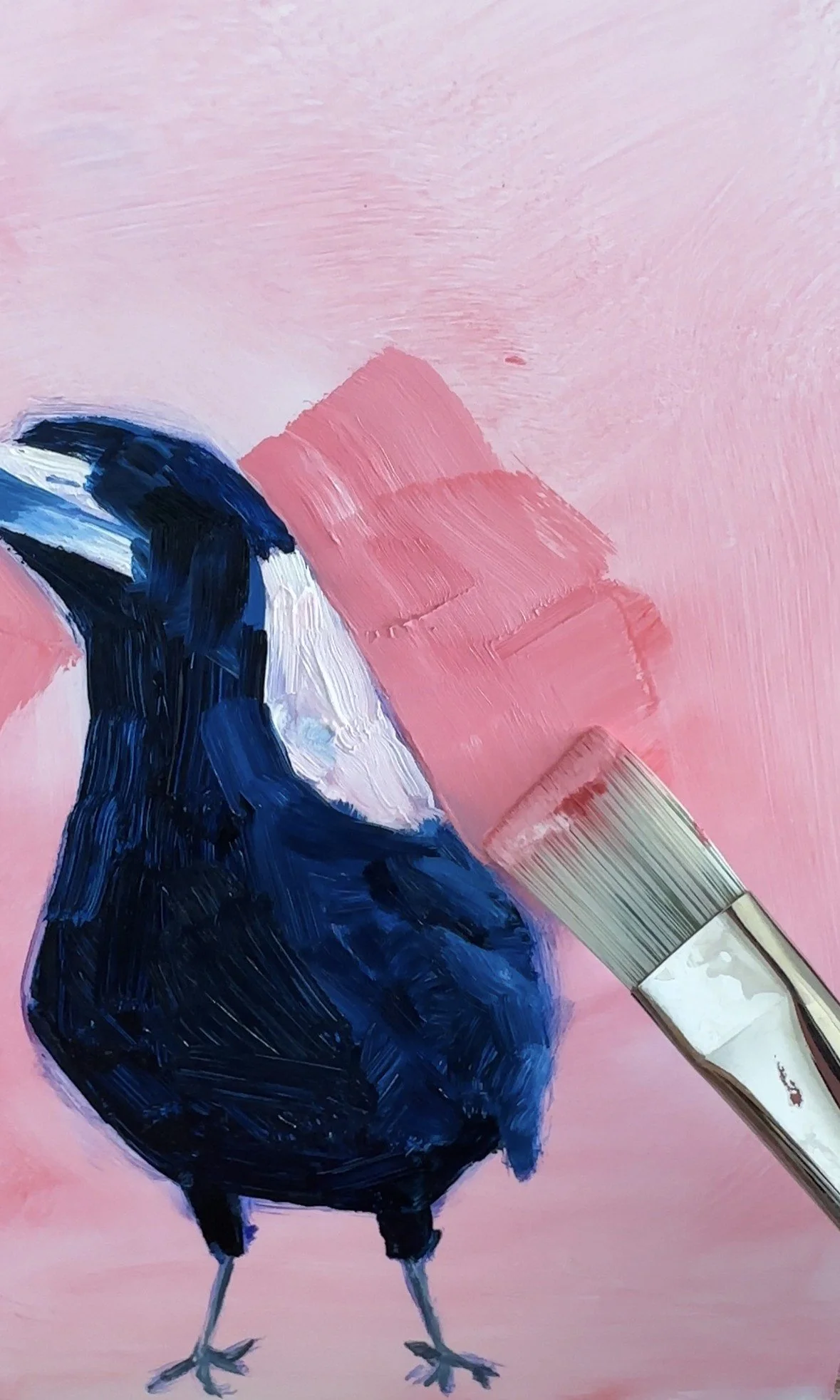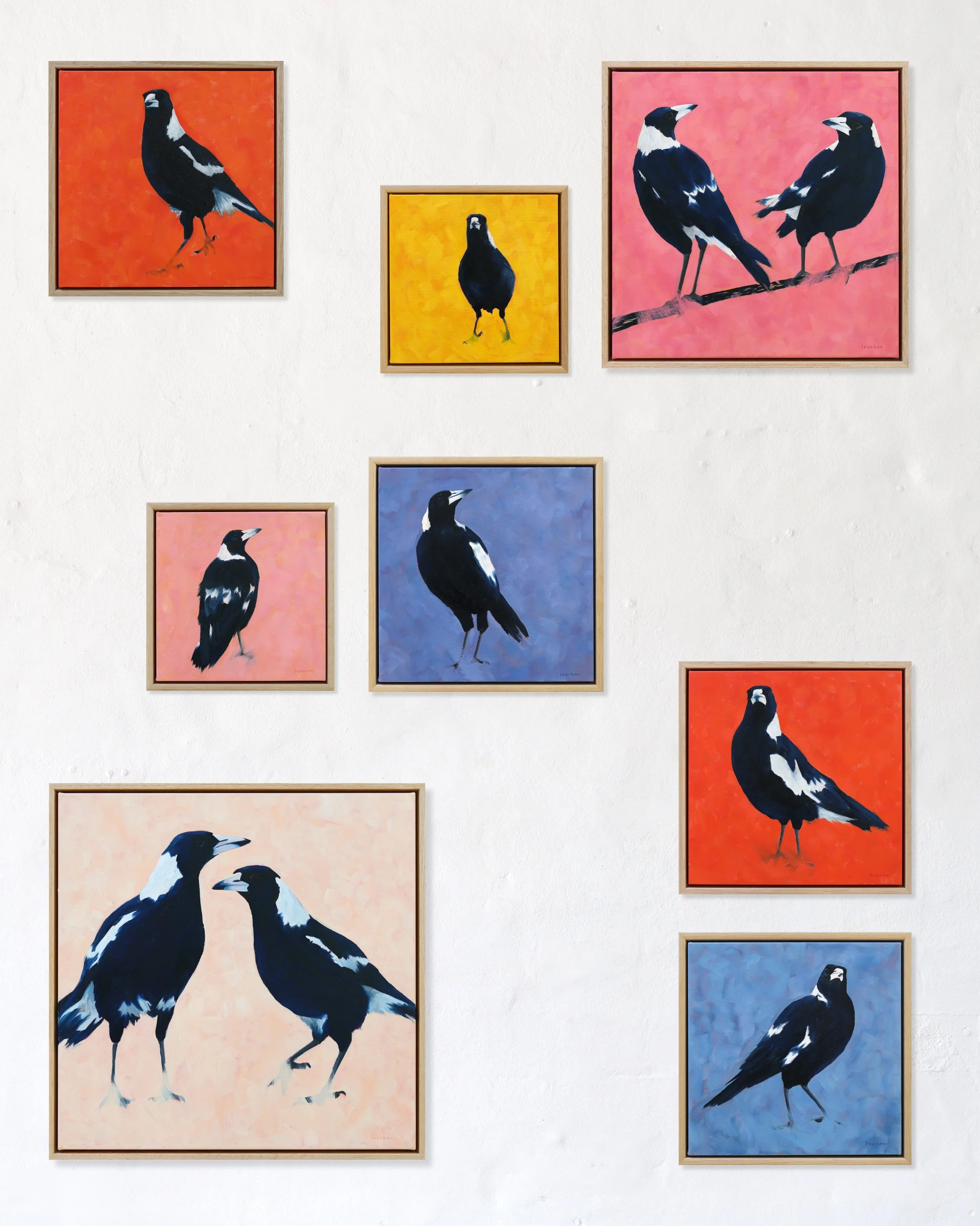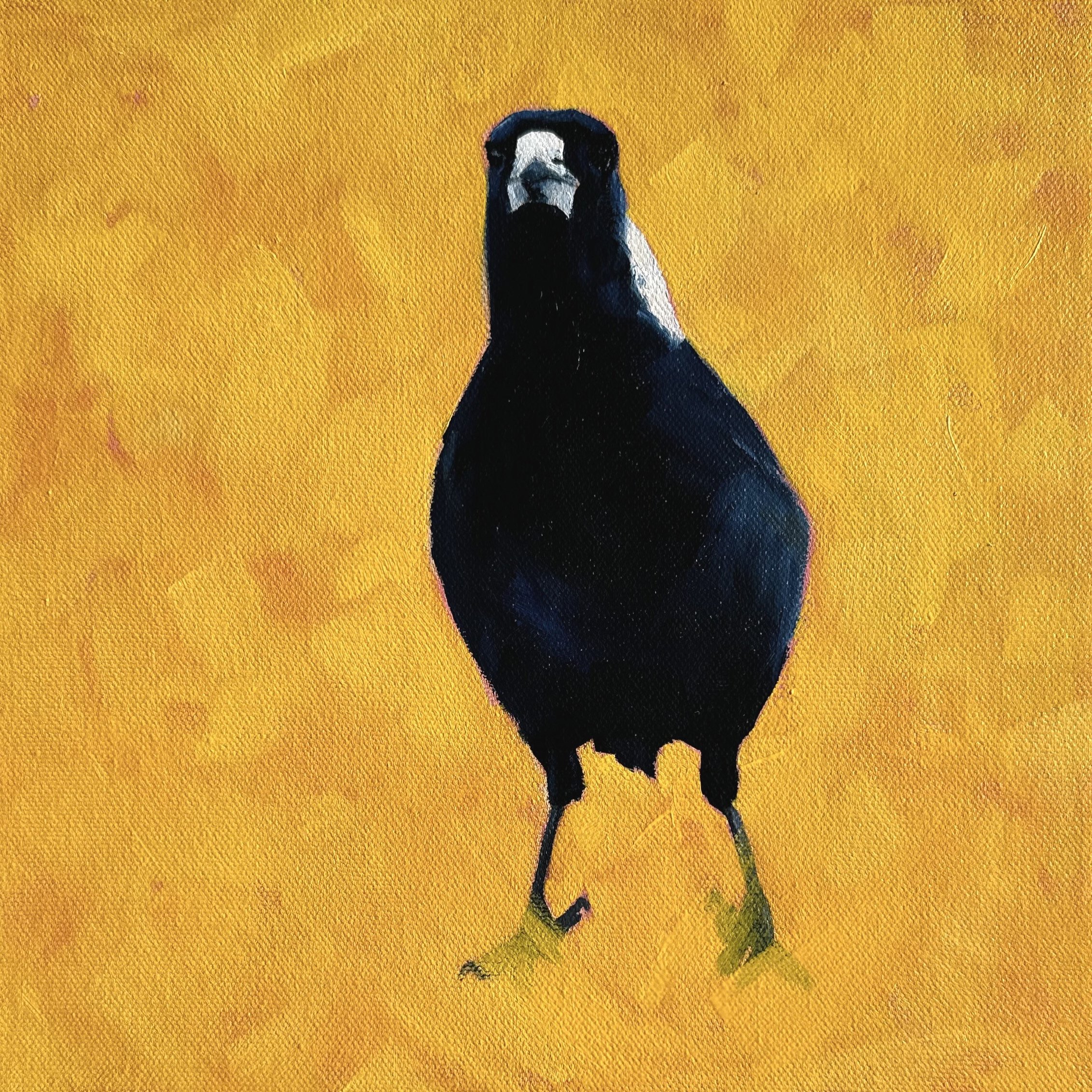 A few years ago, I felt this strong desire to paint these fascinating birds. I hadn’t paid much attention to them until I moved to Bathurst, where they became impossible to ignore. I started to notice something unique about Magpies—they don’t just glance at you like other birds; they actually stare. At first, I found them a bit intimidating, but even more so, I was captivated by their boldness. Magpies exude confidence, strutting around with an air of coolness, and their expressions can range from cheeky to downright intense. This exhibition aims to capture their playful spirit and the vibrant moods they convey.