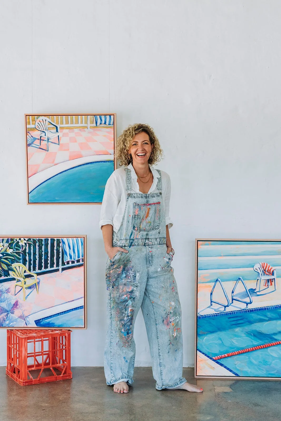 Sophie Cork is a contemporary artist based in Orange, NSW, whose vibrant paintings celebrate the colour, nostalgia, and charm of Australian life. Her work captures familiar scenes such as backyards, verandahs of old homes, and retro motels, reimagining them with bold palettes and playful compositions.