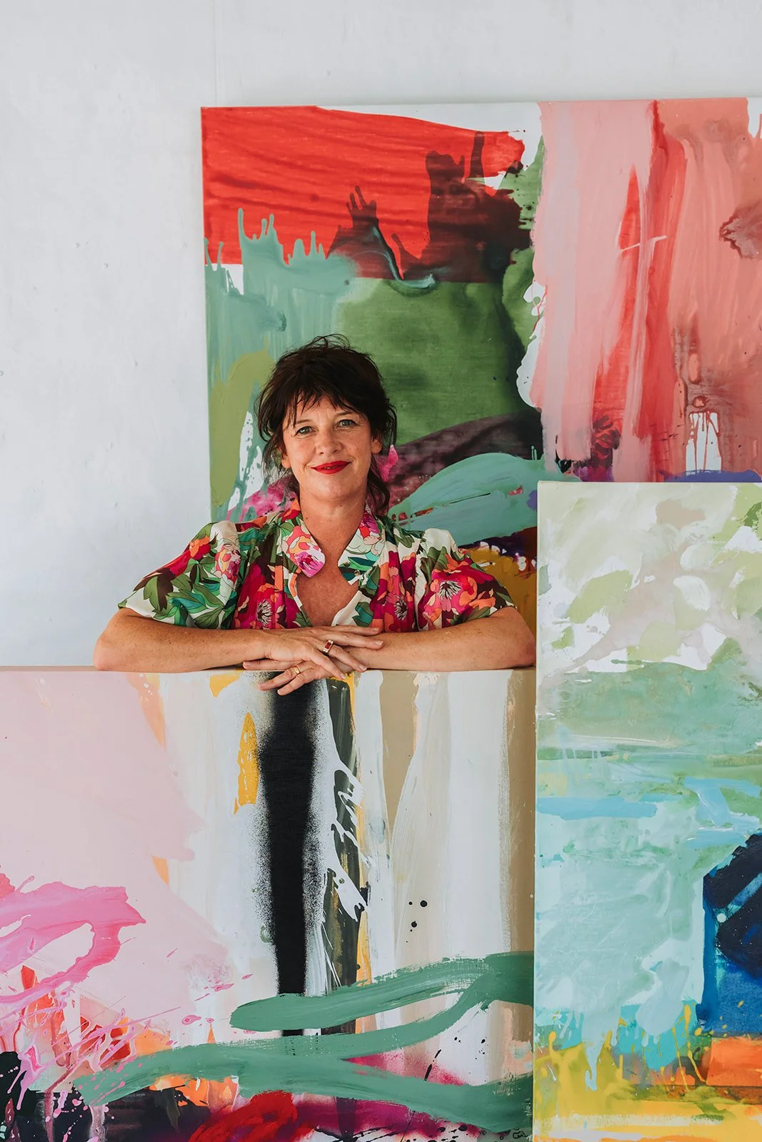 Working from her light-filled studio, an industrial shed nestled within lush garden surrounds on the outskirts of Orange, Larissa embraces both experimentation and intuition in her process. Her paintings celebrate colour as a powerful language, evoking joy and playfulness while inviting viewers to see the world through a more vivid and expressive lens.